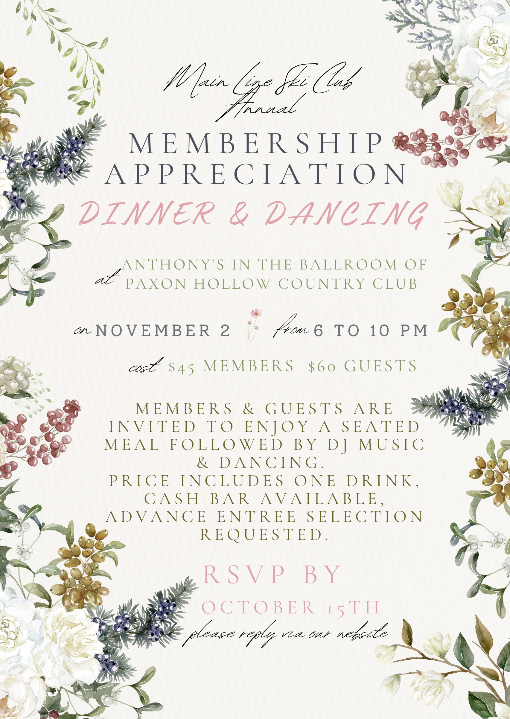 Welcome to our annual member appreciation party. Online registration is now closed. If interested, please contact Judy and we will try to accommodate your RSVP.