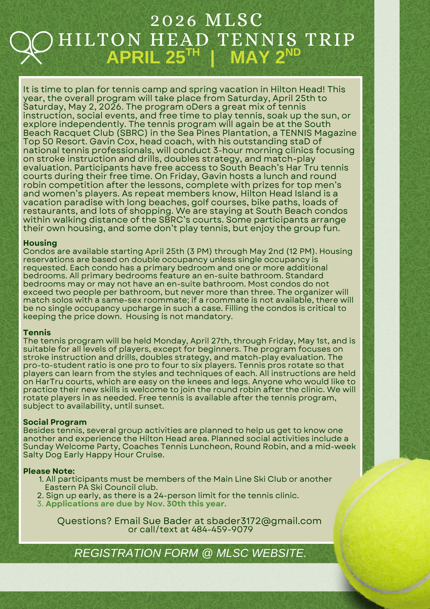 Questions? Email Sue Bader at sbader3172@gmail.com or call 484-459-9079